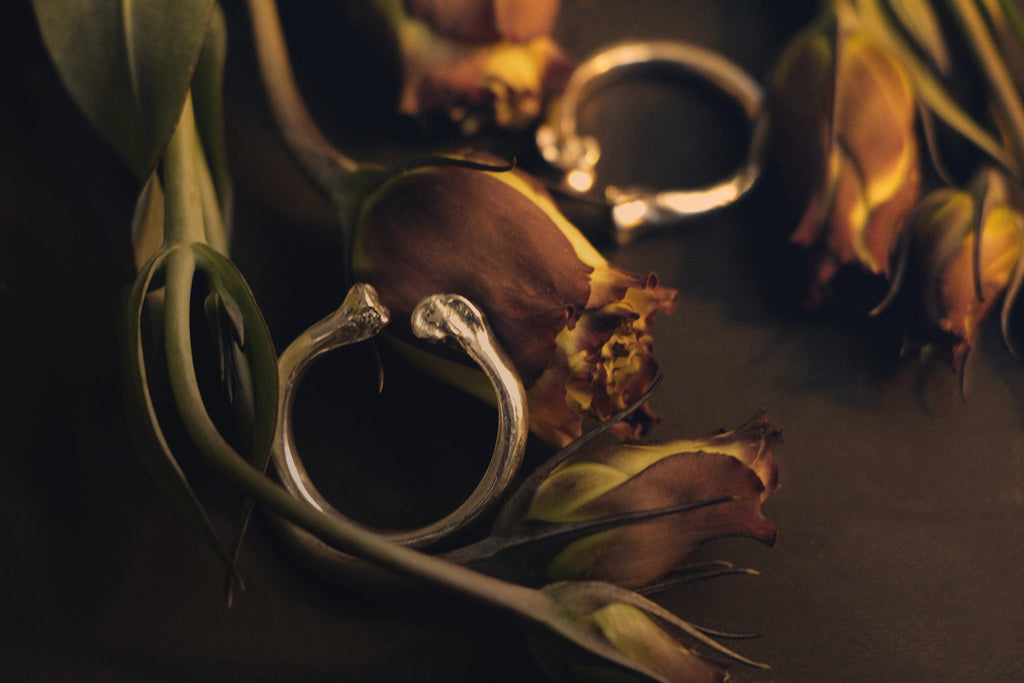 A unique wrapping bone ring, cast in sterling silver from remains found in the black sands at Piha Beach (Auckland, New Zealand).