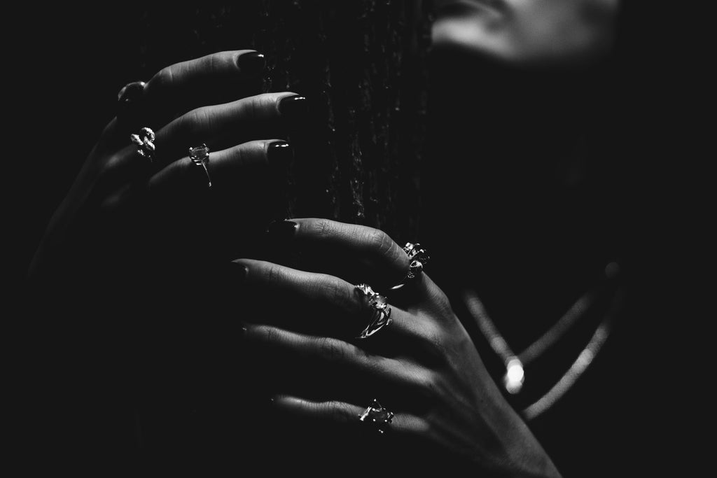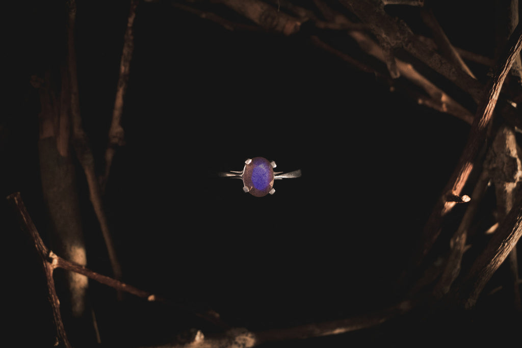 A 6x8mm oval stone set in a classic four prong setting. Available in high polish or oxidised with sulphur for that gloomy brimstone finish.