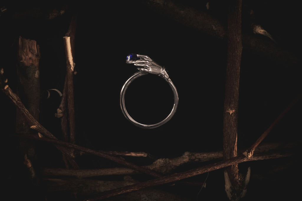 This solid silver ring sees a single hand grip its very own symbol of secrecy, love, condemnation, or a promise, in the form of a sweet claw set gemstone.