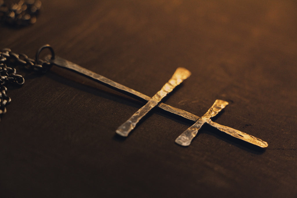 Brimstone Jewellery’s stand out first long length necklace. A beautiful Brimstone cross, 70mm in length, individually hand hammered from sterling silver, and finished, with sulphur no less, to obtain a dreary dull grey patina to compliment the unique hand hammered texture. Pendant sits below bust as a statement piece.