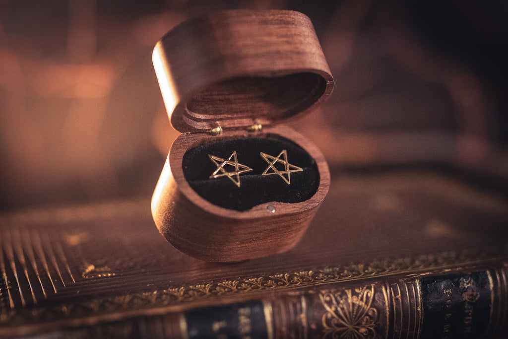 Symbolising the classical element earth, these small pentacle stud earrings with butterfly backs are handmade in Sterling Silver or 9ct Yellow Gold.