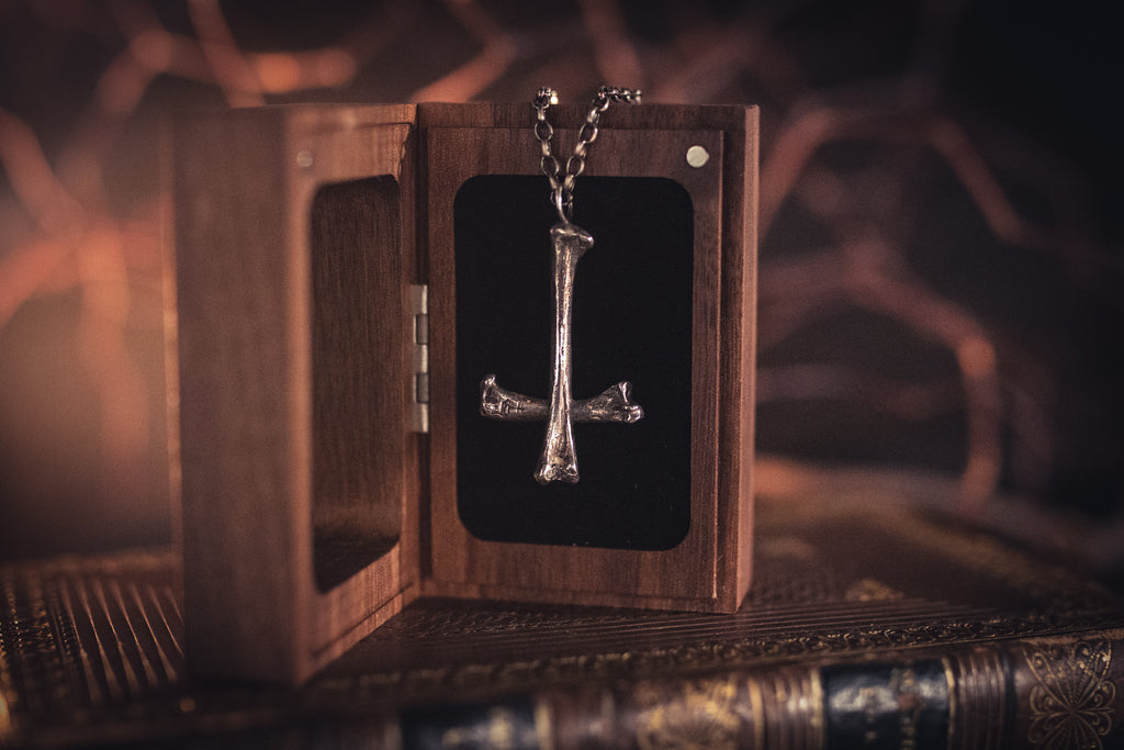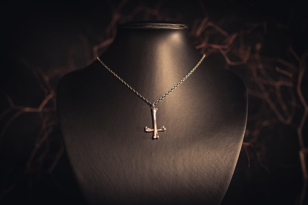 The Unholy Bone Cross, A heavy sterling silver creation made with solid cast silver bones, ethically foraged from the Black Sands of New Zealand's Piha Beach.