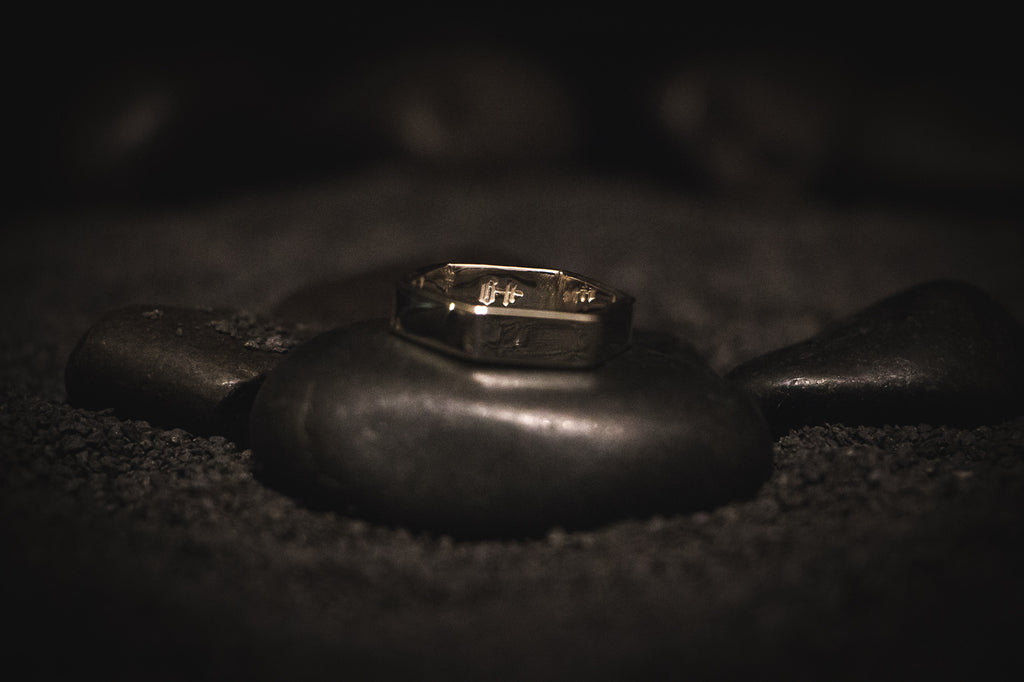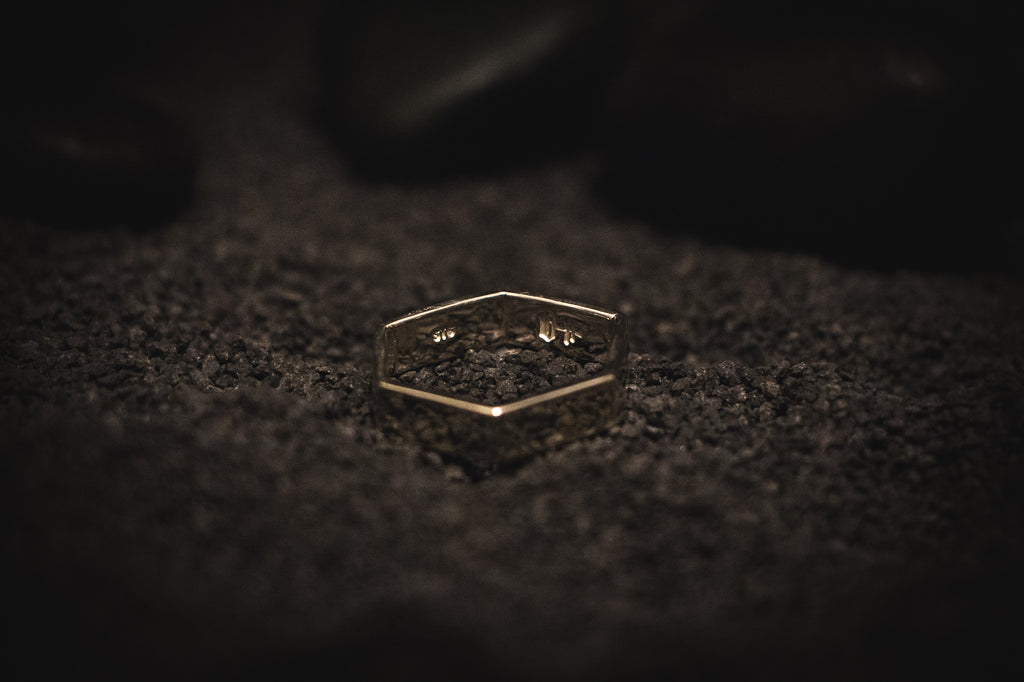 This solid, unisex thick hexagon band, is made to your size in silver or 9ct yellow, white or red gold.
