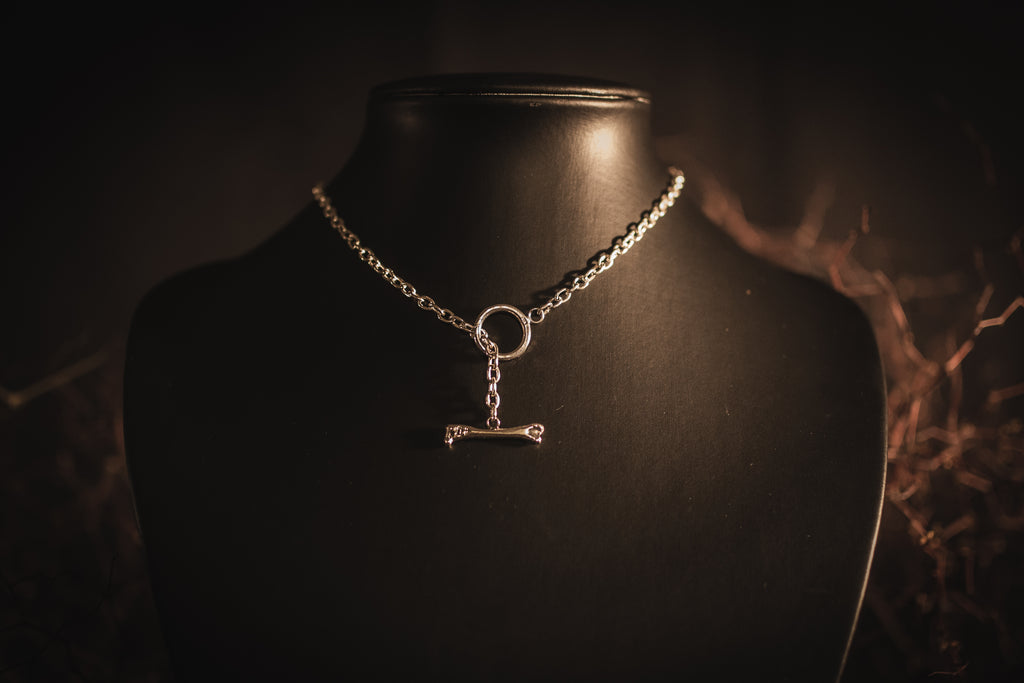 One hundred and forty cathartic links of solid silver and labour later, I give you the Brimstone Fob Chain - Finished with a heavy 'O' hoop and the classic Brimstone Bone as the fob.